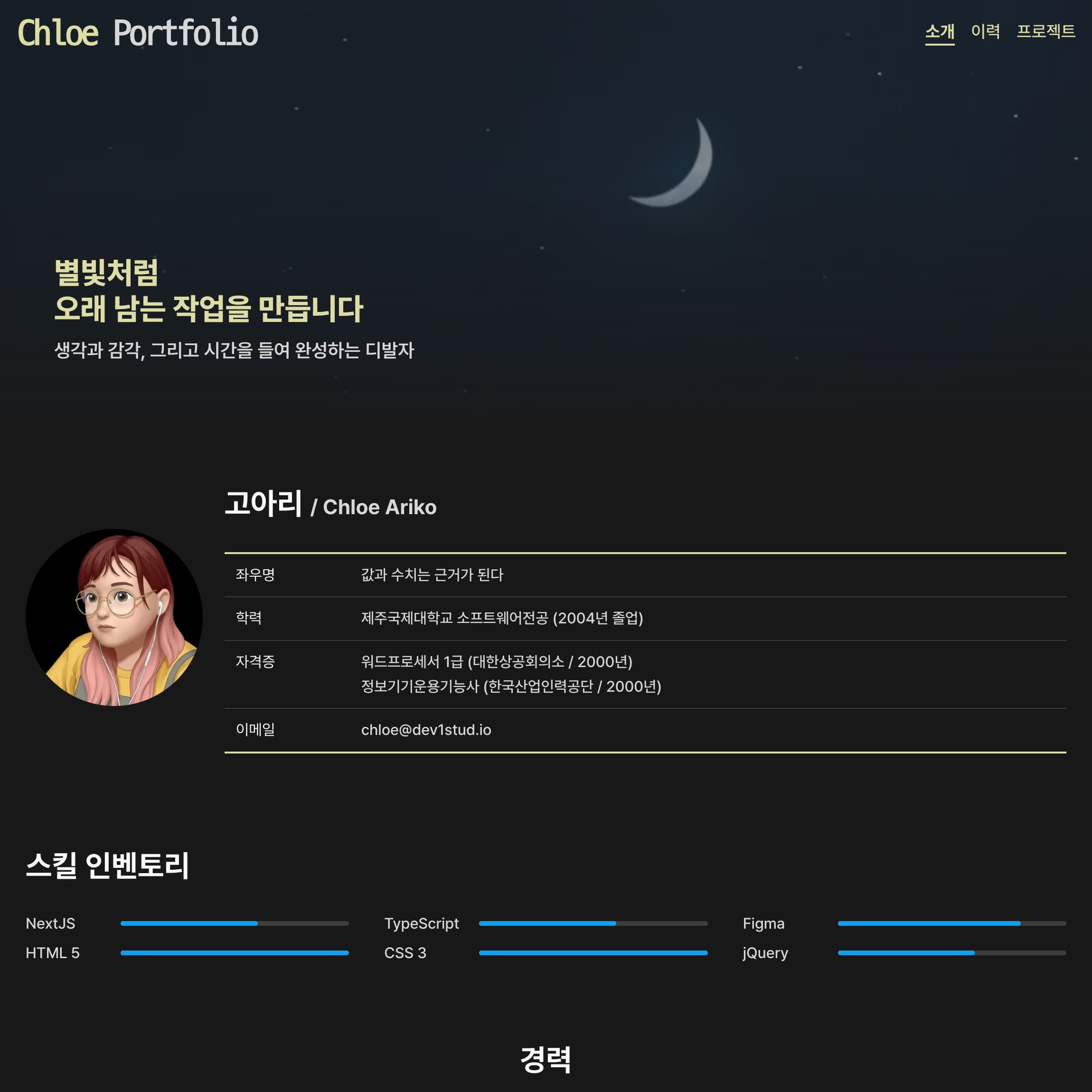 개인 포트폴리오 원페이지 템플릿으로,